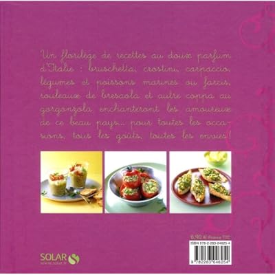 En italien, " antipasto " signifie littéralement " avant les repas ". Ces petits hors-d'œuvre ont pour vocation de stimuler l'appétit et se consomment aussi bien froids que chauds. Après une courte introduction dans laquelle l'auteur revient sur l'origine de cette spécialité transalpine, c'est à un véritable voyage au cœur des régions italiennes que nous invite ce nouvel opus de la collection Nouvelles variations gourmandes. Découvrez 28 recettes d'antipasti tout droit venues des régions vénitienne, sicilienne, de la Ligurie, de la province de Reggio d'Emilie, de la Toscane, du Piémont, du Frioul, réparties dans trois chapitres : " En famille ", " Entre amis " et " Petits dîners ". Dans la première partie, ne manquez pas les " Crostini à la génoise ", la " Mozzarella en calèche ", les " Coquilles Saint-Jacques à la vénitienne " ou encore les " Beignets de parmesan " qui, à coup sûr, sauront vous conquérir. Dans le deuxième chapitre, impressionnez vos invités avec les recettes de " Bruschetta à l'espadon et à la menthe ", l' " Emincé de poires et coppa au gorgonzola ", la " Crème de potiron au jambon de Parme ", ou encore avec les " Sardines farcies à la beccafigu". Enfin, faites de vos dîners en tête à tête un véritable ravissement pour vos papilles, avec les " Langoustines au Martini ", l' " Araignée à la mode de Trieste ", les " Rouleaux de bresaola et pistaches " ou encore la " Verrine d'aubergine, ricotta et tomates cerises "... Un savoureux voyage des sens !