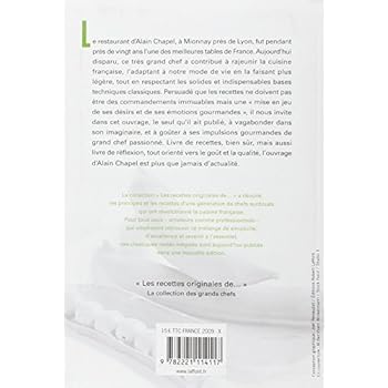 Le restaurant d'Alain Chapel, à Mionnay près de Lyon, fut pendant près de vingt ans l'une des meilleures tables de France. Aujourd'hui disparu, ce très grand chef a contribué à rajeunir la cuisine française, l'adaptant à notre mode de vie en la faisant plus légère, tout en respectant les solides et indispensables bases techniques classiques. Persuadé que les recettes ne doivent pas être des commandements immuables mais une "mise en jeu de ses désirs et de ses émotions gourmandes", il nous invite dans cet ouvrage, le seul qu'il ait publié, à vagabonder dans son imaginaire, et à goûter à ses impulsions gourmandes de grand chef passionné. Livre de recettes, bien sûr, mais aussi livre de réflexion, tout orienté vers le goût et la qualité, l'ouvrage d'Alain Chapel est plus que jamais d'actualité.